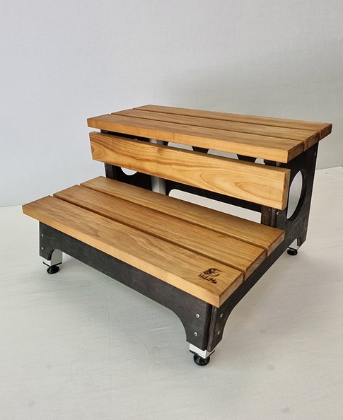 Kaunis, tukeva ja kevyt Hilima-porrasjakkara sopii nousujakkaraksi saunan lauteille tai vaikkapa kylpytynnyrin portaiksi.