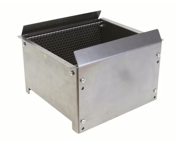 Arinallisiin ja arinattomiin tulisijoihin tarkoitettu teräksinen pellettiboxi.