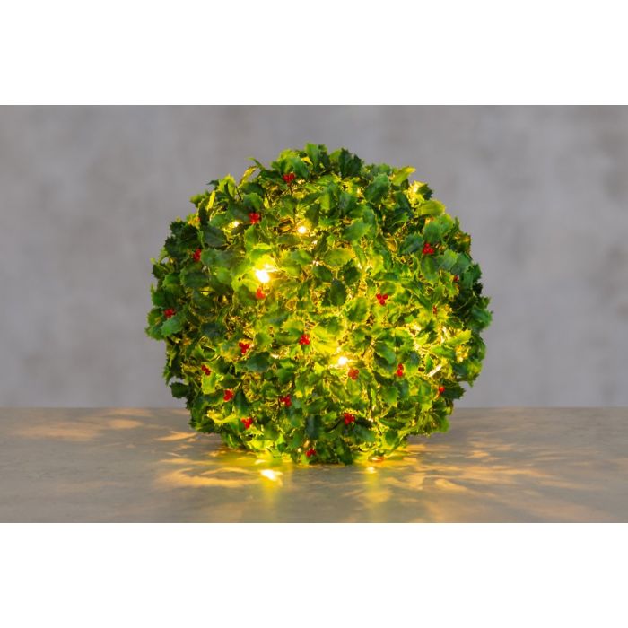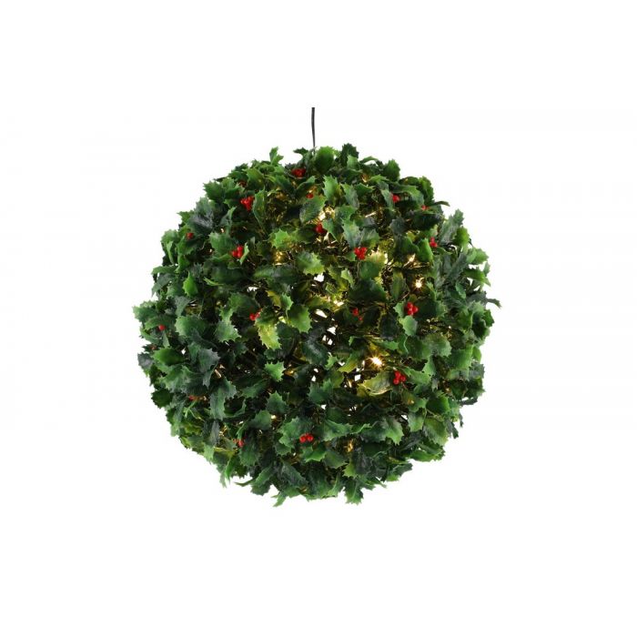 Näyttävä ja kaunis mistelipallo kruunaa joulunajan koristelun. Pallossa on 30 lämminvalkoista LEDiä, 5 m liitäntäjohto ja IP44 muuntaja sisä- ja ulkokäyttöön. Pallon halkaisija 30 cm.