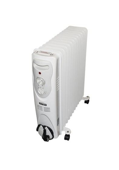 Helposti siirrettävä öljytäytteinen 13-lohkoinen HARJU-lämmitin kuiviin tiloihin. Lämmittimessä on kaksi lämmitystehovalintaa. Ylikuumenemissuoja ja kaatumissuojakytkin varmistavat turvallisen käytön.