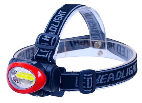 Harjun säädettävillä nauhoilla varustettu otsalamppu. Valaisukulma säädettävissä valaisinosaa muovirungosta ylös/alas kääntämällä. Teho 3 W. Valon määrä 240 lm.