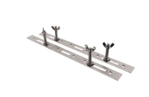 Laituritikkaiden kiinnityssarjassa on kolme säädettävää pultin paikkaa eri laiturikiinnityksille: 190 – 310 mm ja 135 – 175 mm. Tikkaiden kiinnitys tapahtuu siipimuttereilla M10 x 60 ja tikkaiden kiinnitys laituriin 6 kpl M6 ruuveille (eivät sisälly pakkaukseen).