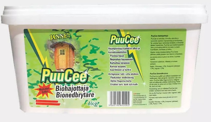 Jannen PuuCee biohajoittaja on tarkoitettu käytettäväksi ulkohuussissa, hyyskässä, pihanperällä, pikkulassa, paskahuussissa, hätämajassa, ulkokäymälässä.