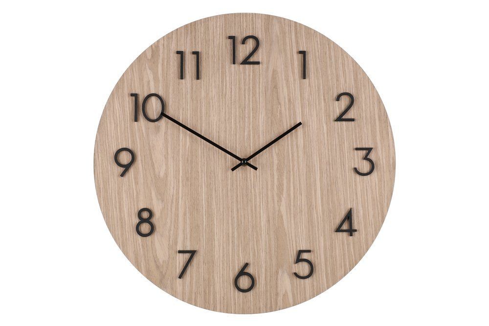 Isokokoinen seinäkello on valmistettu vaalean puun värisestä MDF-levystä. Kellossa on mustat 3D-numerot ja mustat alumiiniviisarit. Hiljainen koneisto. Ei sekuntiviisaria. Kellon halkaisija 50 cm. Paristo 1 x AA (ei sisälly).