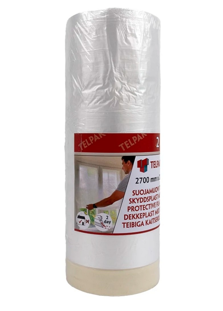 Suojamuovi teipillä 2700mm 20 m rullassa. Suojaa käsiteltävät pinnat helposti ja nopeasti. On helppo asentaa ja poistaa käytön jälkeen. Suojaa kerralla suuria pinta-aloja.