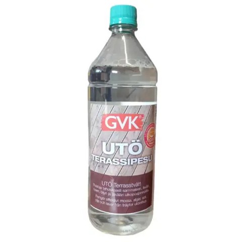 Utö Terassipesu on tehokas ja pitkävaikutteinen käyttövalmis puhdistusaine puupinnoille.