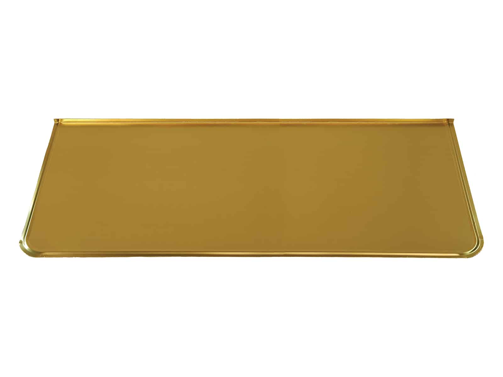 Pelti on kuparia ja sen takareuna on taitettu. Pellin etu- ja sivureunoja kiertää sikkaus, joka tekee pellistä jäykemmän ja paremmin lattiapintaa vasten istuvan. Pelti pysyy paikoillaan omalla painollaan.
